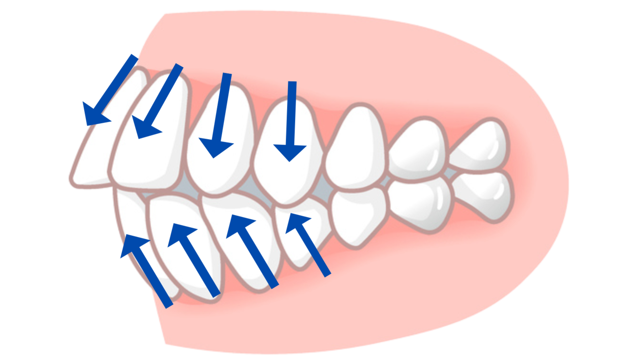 お口の状況によっては、適切なスペースを確保するために抜歯する必要があるケースもあります。例えば、突出した前歯を引っ込めるのが難しい症例などです。