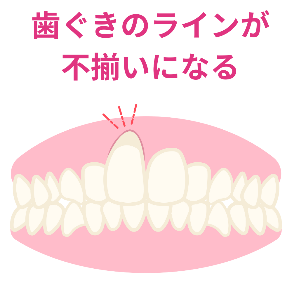 しかも前歯が外側に傾くと、それに伴い奥歯の位置もずれてしまって、噛み合わせがおかしくなってしまいます。