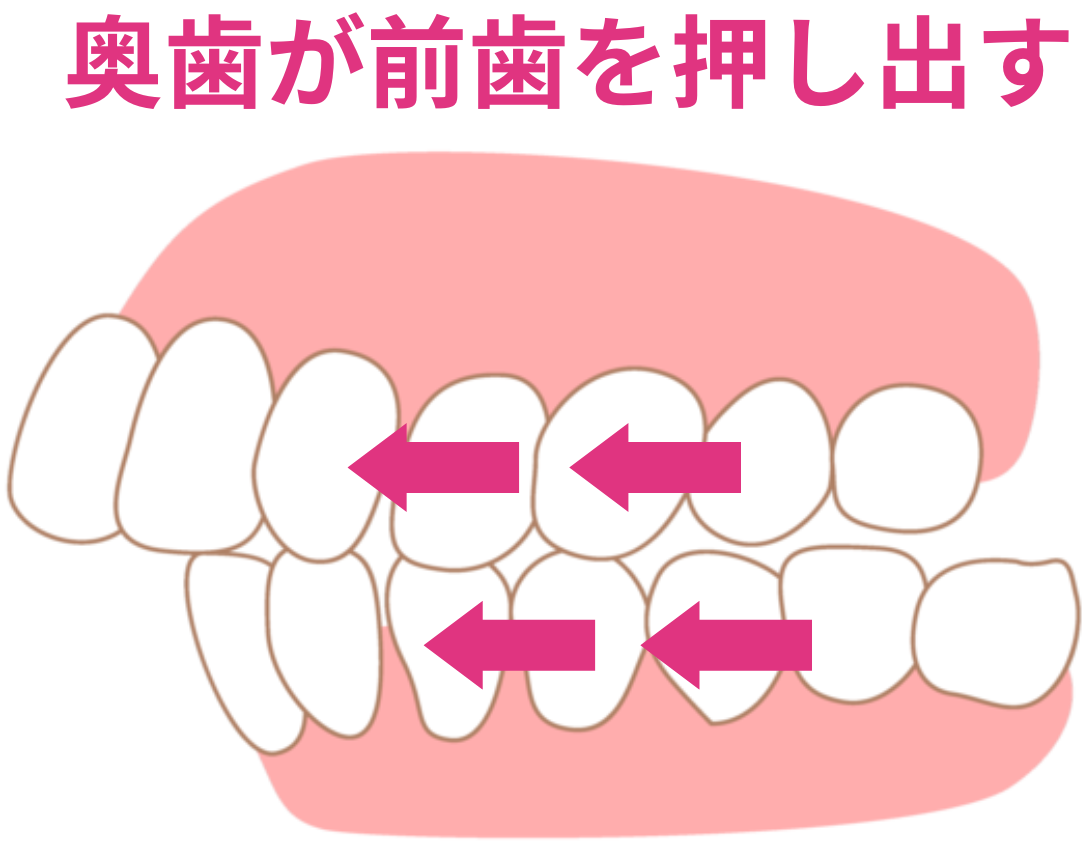 奥歯が斜めに傾いて前歯を押し出していると、前歯をきれいに並べるスペースがありません。
